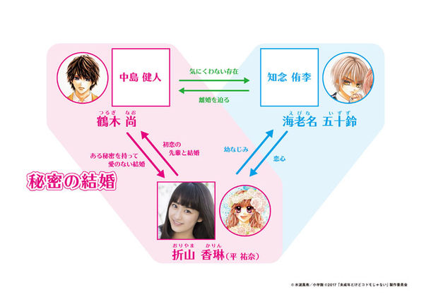 映画では鶴木尚役をSexy Zoneの中島健人、折山香琳役を平祐奈、尚と香琳に離婚を迫るお金持ち・海老名五十鈴役をHey! Say! JUMPの知念侑李が担当。監督は「ヒロイン失格」「あさひなぐ」の英勉が務め、脚本は戯曲「女かくし」で第3回近松門左衛門賞の優秀賞を受賞した新鋭・保木本佳子が手がける。