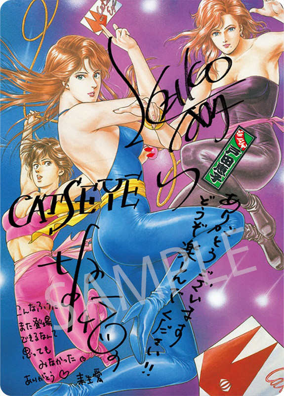 「劇場版シティーハンター <新宿プライベート・アイズ>」の来場者特典第4弾として配布されるトレーディングカード5枚セットより、「キャッツ▼アイ(▼はハートマーク)」の絵柄。