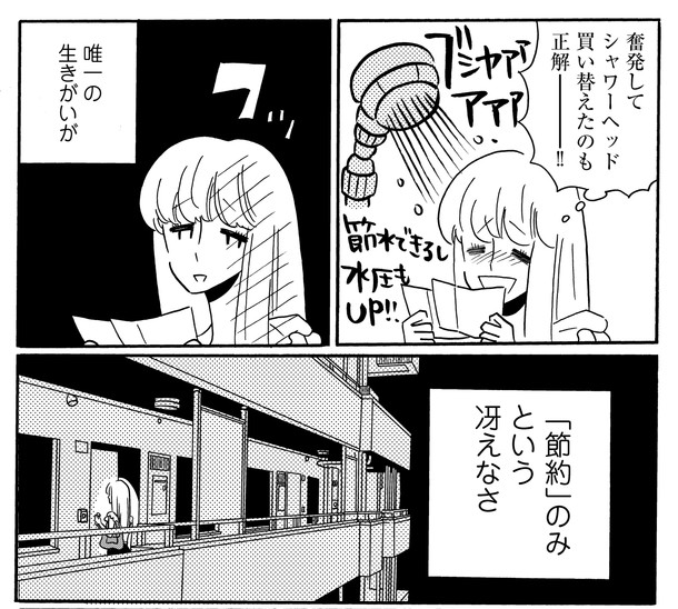 本作の主人公は28歳OL・大島凪。凪は会社では周囲の空気を読むのに必死で、それでも仕事を押し付けられるなど、冴えない生活を送っていた。唯一の楽しみは光熱費や食費を節約することだった凪だが、ある理由で心にダメージを負ってしまったことから、さらなる断捨離生活を送ることになる。コナリは同誌初登場。