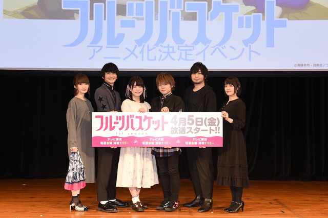 「フルーツバスケット」は、2001年にもテレビ東京系にて全26話でTVアニメ化されている。このたびの再アニメ化に際し、高屋が「作品に思い入れを持ってもらえる。というのはゾッとするほど困難で、奇跡のようにありがたい事だと常に思っています。前作へのリスペクトを忘れる事なく、その上で、一人でも多くの方に新たな思い入れを抱いてもらえるような作品を構築していってくださることを願っております」とコメントを寄せたことが紹介された後、MCが声優陣に「キャストに決まったときの気持ち」を質問。内田は「事務所のデスクさんが(『フルバ』を)お好きで。いつもは役が決まったときも『おはようございます。ええ、○○役、決定です』という感じなんですが、今回は『内田さん……はあ(ため息)……夾くんです……』と様子が違って」と明かすと、会場は爆笑の渦に。「すごい役だな!と。これは気合いを入れねばならぬ」と決意を新たにしたと言う。中村も「紫呉役の前任者の置鮎(龍太郎)さんから『紫呉役よろしくね!』って連絡が来たので、『やらせていただきます』という話をさせていただいたり」と振り返った。