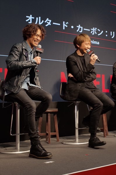 小野は「いつでもどこでも見られるのがいいですよね。僕は大体お風呂で見たり、新幹線とか移動中に見たり。作品も尽きないですし、ずっと見てますね」とNetflixとの付き合い方を語る。諏訪部は過去の作品がアーカイブされていることに触れ、「出来はいいのに人気が出なかった作品が、時間経ってから火がついて、ブームになったりする可能性もある。丹精込めて作った作品が埋もれずに済む。そういった部分もすごくいいと思う」とコメントした。