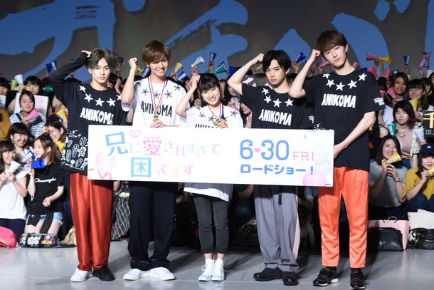 「兄に愛されすぎて困ってます」はまったくモテないが恋愛体質な女子高生・せとかと、ヤンキーでクールな性格だが、実は誰よりも妹思いな兄・はるかを軸としたラブストーリー。イベントにはせとか役の土屋太鳳、はるか役の片寄太(GENERATIONS from EXILE TRIBE)に加え、芹川高嶺役の千葉雄大、美丘千役の草川弥(超特急)、芹川国光役の杉野遥亮といったそれぞれタイプの異なるイケメンを演じる面々が登場した。