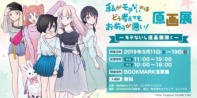 「私がモテないのはどう考えてもお前らが悪い!」の15巻が5月11日に発売されることを記念した同原画展。会場には生原稿を展示するほか、描き下ろしのイラストを使ったグッズの販売も行う。原画展の開催に先がけ智子、ネモ、ゆりの描き下ろしイラストが公開された。