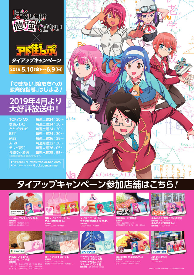 筒井大志原作によるTVアニメ「ぼくたちは勉強ができない」と東京・秋葉原の観光マップ・アド街っぷのタイアップキャンペーンが、5月10日より開催される。