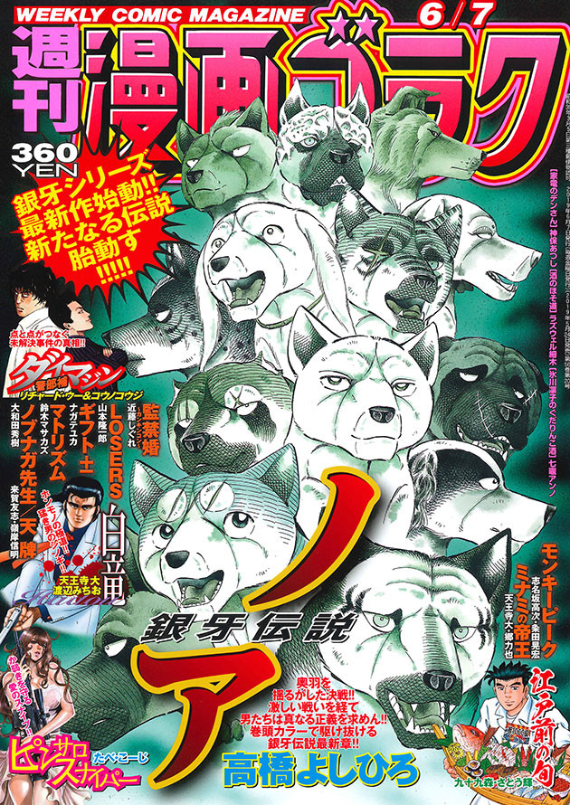 本日5月24日に発売された週刊漫画ゴラク6月7日号(日本文芸社)にて、高橋よしひろ「銀牙」シリーズの新作「銀牙伝説ノア」の連載がスタートした。