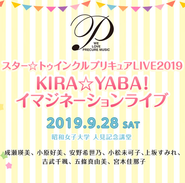 TVアニメ「スター☆トゥインクルプリキュア」のライブイベント「スター☆トゥインクルプリキュアLIVE2019 KIRA☆YABA!イマジネーションライブ」の開催が決定。9月28日に東京・昭和女子大学人見記念講堂にて第1部・第2部の2公演が行われる。
