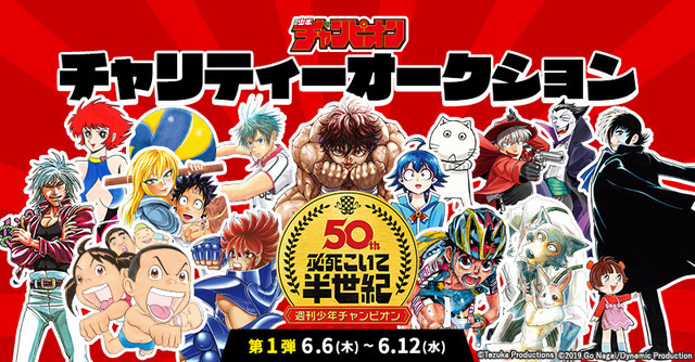 週刊少年チャンピオン(秋田書店)創刊50周年企画の1つ「チャリティーオークション」の詳細が発表された。