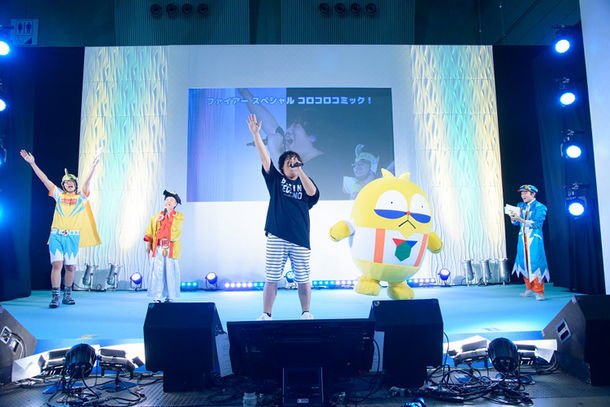 コロコロコミックの編集長・和田誠氏の紹介で、「40周年アニバーサリーだヨ!!コロコロオールスターステージ」にサプライズゲストとして登場した岡崎体育。コロコロ作品に登場する人気キャラの口癖や、誌面でもおなじみのコインで削って楽しむ「銀はがし」、さらに編集長がインタビューで答えたセリフまで歌詞にちりばめられた「コロコロコミック40周年のうた」で、ステージに集まった約1000人のファミリーを盛り上げた。なお同楽曲のリリースは、現時点で未定。