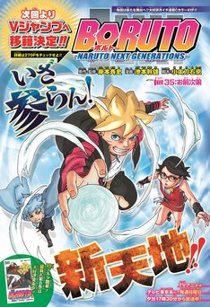 岸本斉史原作・監修、小太刀右京脚本による池本幹雄「BORUTO-ボルト- -NARUTO NEXT GENERATIONS-」が、週刊少年ジャンプからVジャンプ(ともに集英社)へと移籍することが発表された。