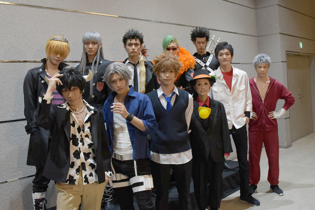 前列左からKIMERU扮するランボ、原嶋元久扮する獄寺隼人、竹中凌平扮する沢田綱吉、ニーコ扮するリボーン、山本涼介扮する山本武、上杉輝扮する笹川了平。後列左から大海将一郎扮するベルフェゴール、高崎俊吾扮するS・スクアーロ、林田航平扮するXANXUS、高木勝也扮するルッスーリア、八巻貴紀扮するレヴィ・ア・タン。