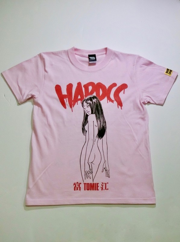 伊藤潤二「富江」をモチーフにしたTシャツとパーカーが、ハードコアチョコレートの店頭とオンラインショップ、Amazon.co.jpで販売されている。