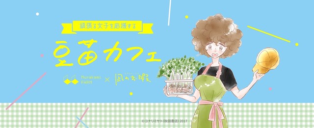 村上カフェが「頑張る女子を応援する!」というコンセプトで実施するこのカフェでは、原作を再現した「豆苗すいとん」や「チョコミントハイボール&パンの耳チョコスティック」を提供。そのほか「豚しゃぶと彩り野菜の豆苗サラダ」や「豆苗茶」といったメニューも登場し、「豆苗すいとん」「豚しゃぶと彩り野菜の豆苗サラダ」にはオリジナルの豆苗栽培容器が付属する。