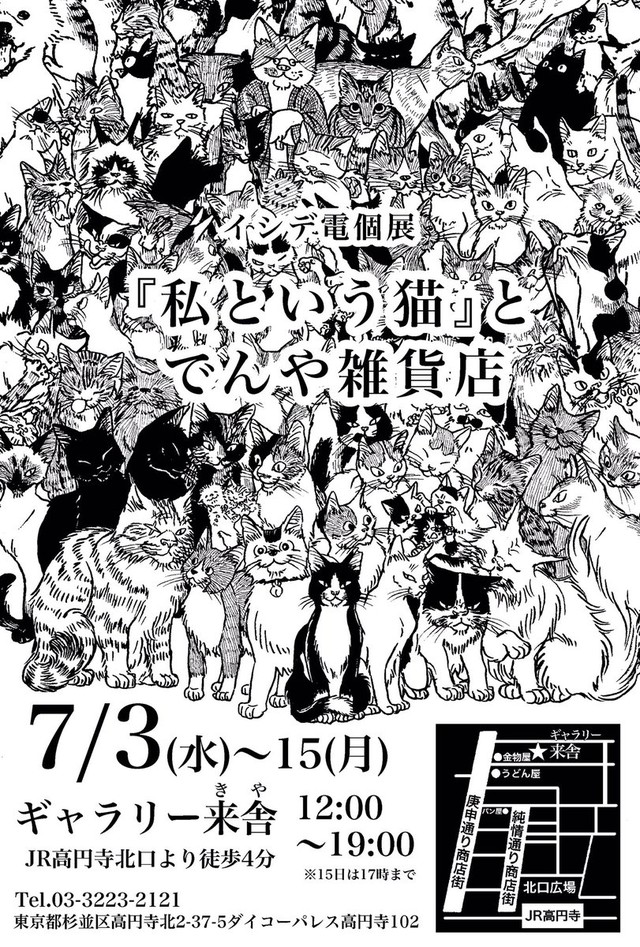 イシデ電の個展「『私という猫』とでんや雑貨店」が、明日7月3日から7月15日にかけて東京・高円寺のギャラリー来舎(きや)で開催される。