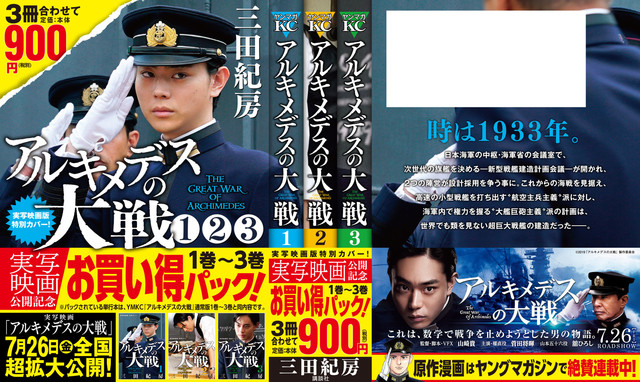 三田紀房「アルキメデスの大戦」1~3巻をセットにした「アルキメデスの大戦 実写映画公開記念 1巻~3巻お買い得パック」が、本日7月5日に発売された。