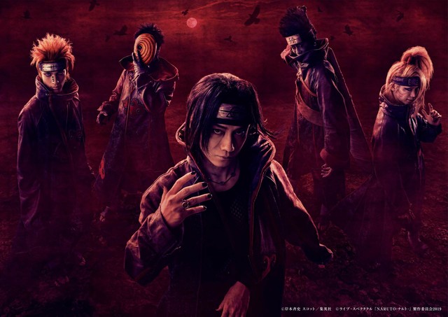このたび、良知真次扮するうちはイタチをはじめとする“暁”のメンバーのビジュアルがお目見え。併せて輝馬扮するペイン、林野健志扮する干柿鬼鮫、辻諒扮するデイダラ、片山浩憲扮するトビの個別ビジュアルと、キャストのコメントを収めた動画が公開された。