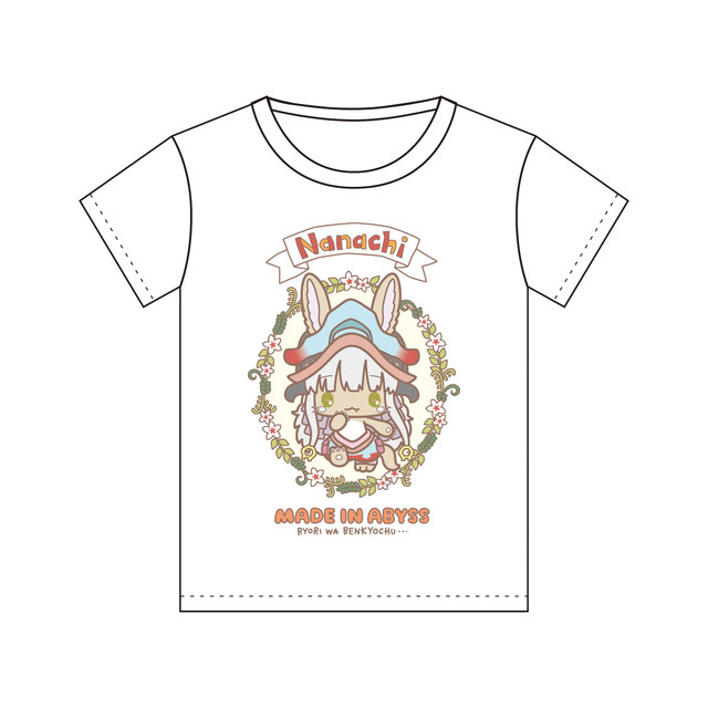 ナナチがサンリオキャラクターのようなデザインとなった「プロデュースの祝福を受けたナナチTシャツ」は4000円、同Tシャツにサコッシュが付いたセットは7000円で販売。またサンリオキャラクターと「メイドインアビス」のキャラクターが一緒に描かれた「サンリオキャラクターズの祝福を受けた探窟隊Tシャツ」は4000円、同Tシャツにアクリルキーホルダー3種が付属するセットは7500円になっている。