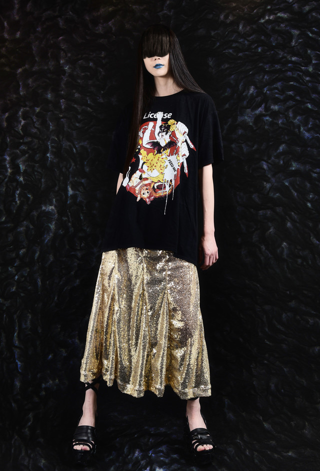 丸尾作品とファッションブランド・MEEWEEによるコラボアイテムの着用イメージ。