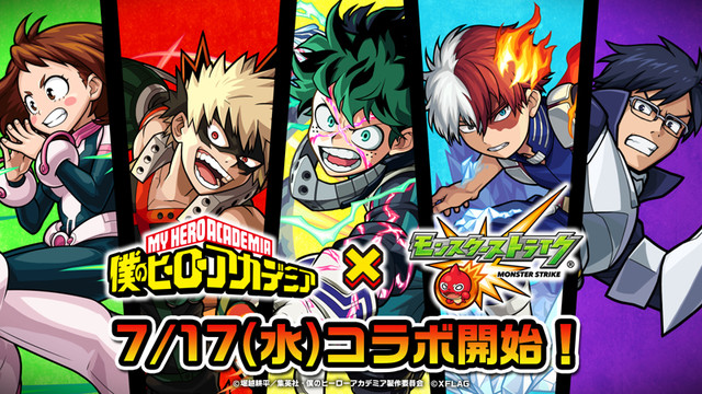 堀越耕平原作によるアニメ「僕のヒーローアカデミア」とスマートフォンアプリ「モンスターストライク」のコラボが、7月17日12時より開催される。