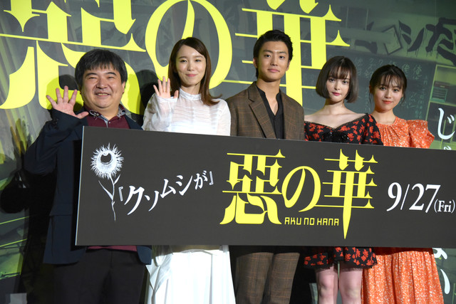 押見修造原作による映画「惡の華」の完成披露舞台挨拶が、本日8月8日に東京・TOHOシネマズ日比谷で開催された。