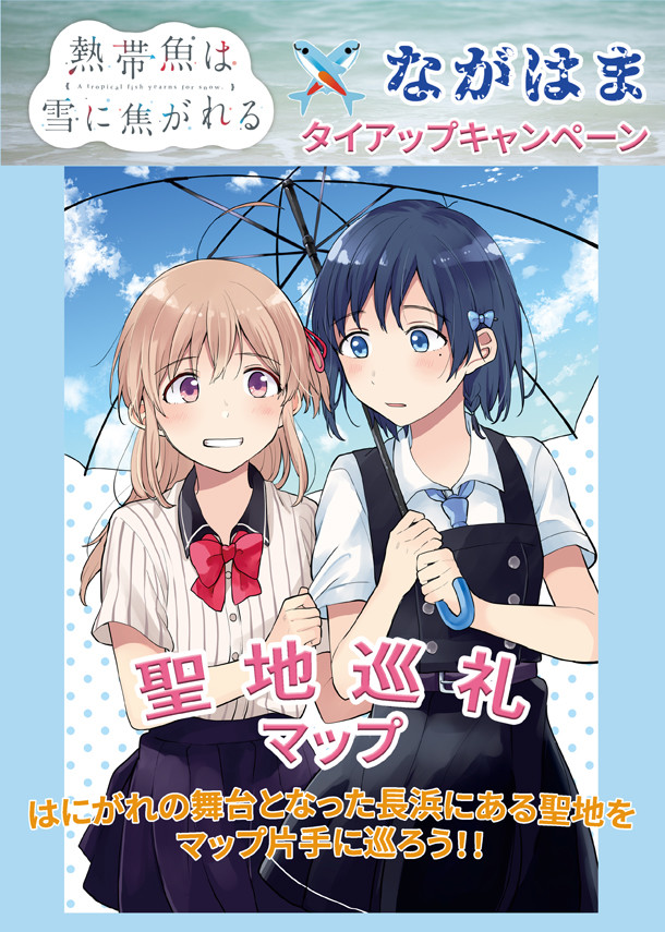 コラボ期間中は長浜町観光案内所が「熱帯魚は雪に焦がれる」でデコレーションされ、作者監修による聖地巡礼マップを配布。大洲市長浜ふれあい会館では複製原画などの展示企画が行われ、等身大パネルとベンチを設置した撮影ブースも用意される。長高水族館開館日にしか販売されない名物パン・水族館パンも、キャンペーンに合わせてパンのまことやで毎日販売。詳細は公式の告知ページにて確認を。