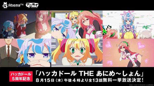 TVアニメ「ハッカドール THE あにめ~しょん」全13話の一挙放送が、明日8月15日16時よりAbemaTVのアニメLIVEチャンネルにて行われる。