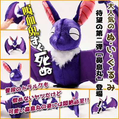 盆ノ木至「吸血鬼すぐ死ぬ」のドラルクがコウモリに変身した姿“鼻息丸”のぬいぐるみが、秋田書店オンラインストアに登場した。
