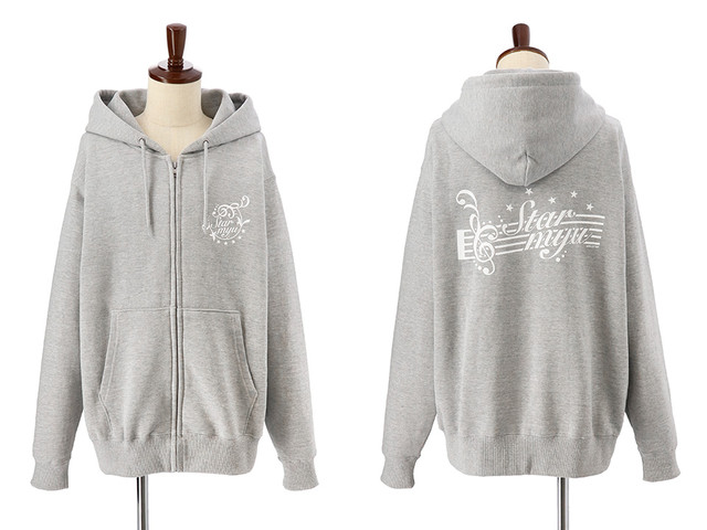 「スタミュ」イメージのグレーパーカー、ト音記号モチーフや五線譜プリント