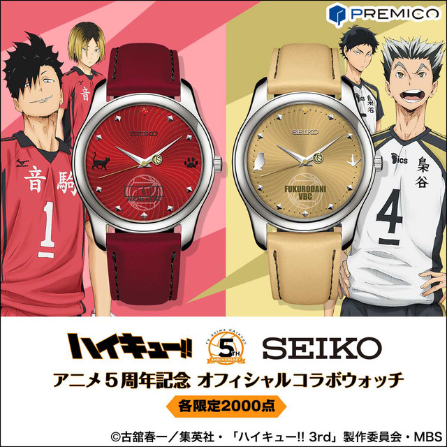 古舘春一原作によるアニメ「ハイキュー!!」と時計メーカー・セイコーがコラボした腕時計の第2弾が登場。オンラインショップ・PREMICOにて2000点限定で販売される。