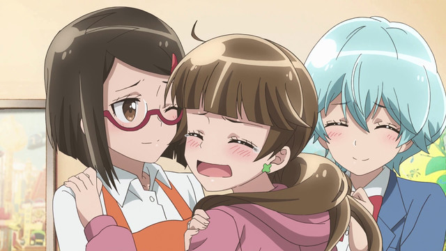 ゲッサン(小学館)にて連載中の「放課後さいころ倶楽部」は京都を舞台に、女子高生の4人がボードゲームやカードゲームのプレイを通して友情を育んでいく青春ストーリー。アニメ第1話では、いつも引っ込み思案で人付き合いが苦手な美姫と、天真爛漫なクラスメイト・綾の「さいころ倶楽部」との出会いが描かれる。