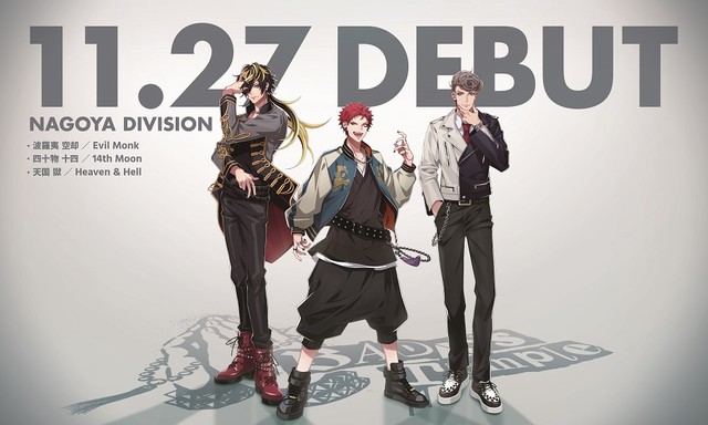 ナゴヤ・ディビジョンのチーム名はBad Ass Temple。メンバーは葉山翔太演じる波羅夷空却(はらいくうこう)、榊原優希演じる四十物十四(あいものじゅうし)、竹内栄治演じる天国獄(あまぐにひとや)の3人で、併せてキャラクタービジュアルも公開された。