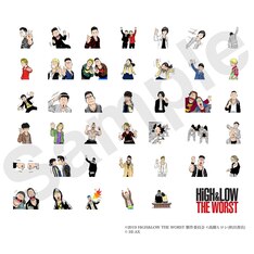 LINEスタンプでは、川村壱馬演じる鬼邪高の花岡楓士雄、吉野北人演じる高城司、志尊淳演じる鳳仙の頭・上田佐智雄、中務裕太と小森隼が演じるオロチ兄弟といった本作の新キャラクターが描かれている。さらに、山田裕貴扮する村山、前田公輝扮する轟、鈴木貴之扮する古屋、一ノ瀬ワタル扮する関という、これまでの「HiGH&LOW」シリーズで活躍してきたキャラクターのイラストも用意された。映画「HiGH&LOW THE WORST」は10月4日より全国ロードショー。