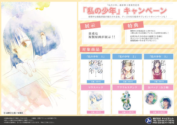 高野ひと深「私の少年」3巻が7月12日に発売されることを記念したキャンペーンが、東京・アニメイト池袋本店で開催される。