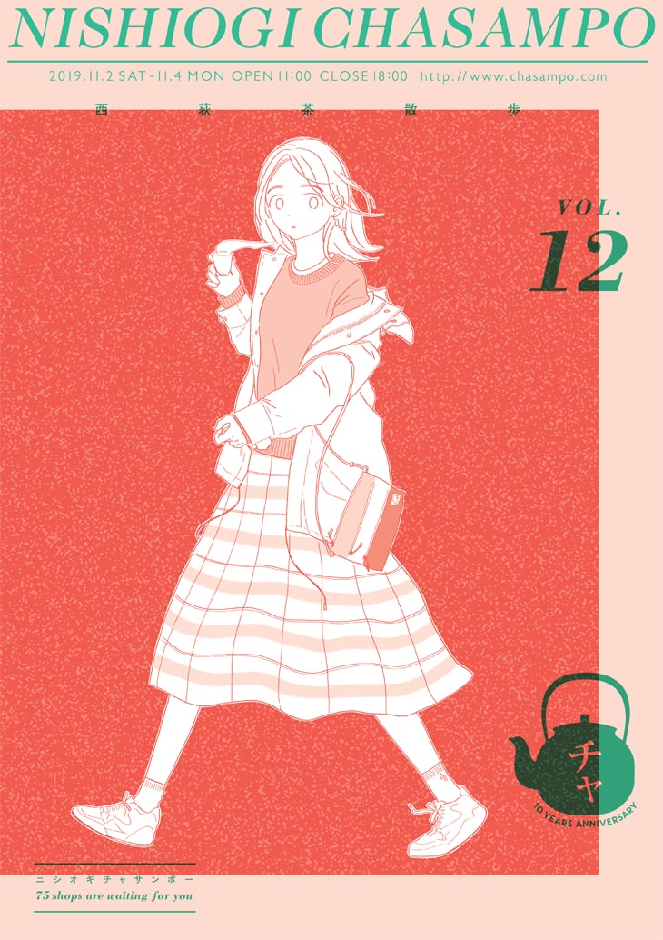 「西荻茶散歩」は、西荻の街に点在する飲食店やギャラリー、デザイン事務所や個人の工房など多種多様なお店やスペースをお茶を飲みつつ散歩できる街歩きイベント。会期中はそれぞれのお店で催しがあり、各店でお茶が無料提供される。2009年11月に4店舗を会場としてスタートした本イベントは今年で10年目を迎え、11月2日から4日にかけて開催される「第12回 西荻茶散歩」には個人商店75店舗が参加。51カ所のチャサンポー店には無料のお茶が、24カ所のチャサンポー飲食&サービス店には特典が用意される。