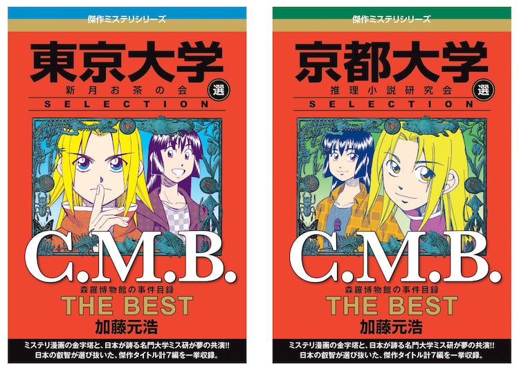 月刊少年マガジン(講談社)で連載中の「C.M.B.森羅博物館の事件目録」は、森羅博物館を営む少年・榊森羅と、元気な女子高生・七瀬立樹が事件を解決していくミステリー。このたびのベスト版は42巻150話を超えるストーリーの中から、東京大学と京都大学のミステリー研究会が選出したエピソードが、「C.M.B. 森羅博物館の事件目録 THE BEST 東京大学SELECTION」と「C.M.B. 森羅博物館の事件目録 THE BEST 京都大学SELECTION」に分けて収録された。また各作品の解説文も収められている。