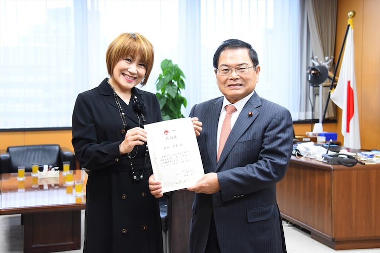 松本梨香が10月1日付けでクールジャパン・アンバサダーに就任。本日10月21日、東京・竹本直一内閣府特命担当大臣室にてその任命式が行われた。