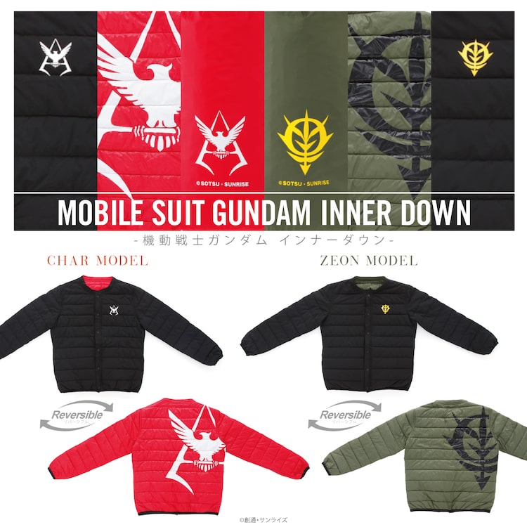 アニメ「機動戦士ガンダム」のインナーダウンが、バンダイのキャラクターファッションサイト・バンコレ!にて販売される。