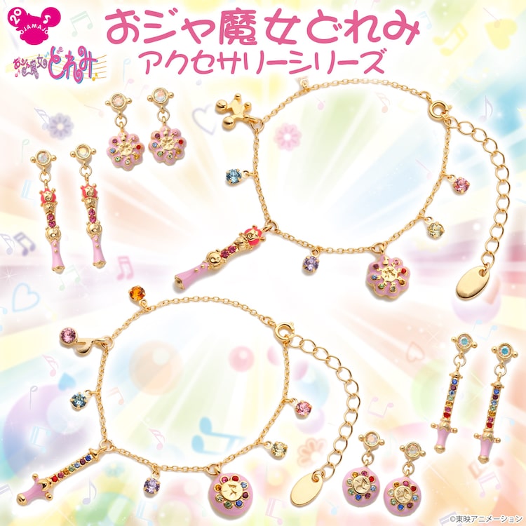 「おジャ魔女どれみ」に登場する見習いタップとぺぺルトポロン、「おジャ魔女どれみ#」に登場するリズムタップとピコットポロン、4つのアイテムがそれぞれピアスとイヤリングになって登場。魔法玉部分にはカラーのスワロフスキーを使用し、上質な輝きを表現した。またタップとポロンの両方のパーツがあしらわれたブレスレット2種もラインナップされている。