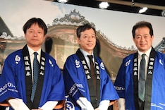 イベントには板尾のほか、愛媛県松山市長・野志克仁氏、そして本プロジェクトを手がけるポニーキャニオンの代表取締役社長・吉村隆氏が登壇。板尾は「道後温泉に行ったことはないんですが、行ってみたかった温泉のひとつです。これを機に行くことができるんじゃないかとワクワクしております」とにこやかに語る。
