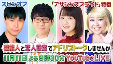 また本特番の第2弾が11月30日の23時30分より、BS日テレにて放送される。こちらの番組にはMCの花江、宇垣、岩井に加え、小野、「アサシンズプライド」の監督を務める相浦和也、ライトノベル評論家の榎本秋が出演。本アニメを原作のライトノベルやコミカライズ作品にも注目しつつ分析するという内容だ。