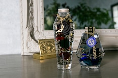 雨宮蓮モデルは、ブラックをベースにカスミソウやローズの花材を使用したカラーリング。瓶の首から下げたチャームはジョーカーの仮面、プレートは予告状をイメージしたデザインで、怪盗団らしさが閉じ込められた。またベルベットルームモデルは、タタリカ、カスミソウ、ローズ、アジサイの花材をセレクトしたブルーベースのアイテム。ラベルには、ジュスティーヌとカロリーヌの帽子に書かれた文字がデザインされ、封蝋風のチャームとゴールドのチェーンがあしらわれた。