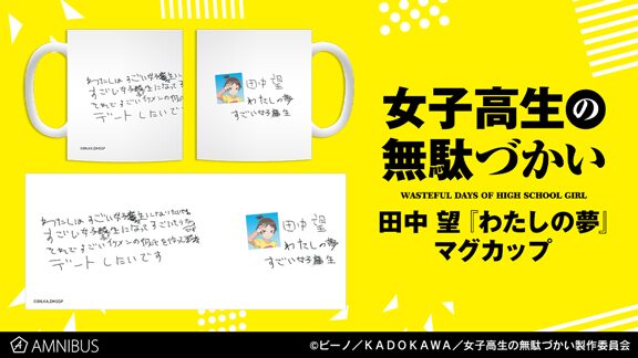 ビーノ原作によるTVアニメ「女子高生の無駄づかい」のマグカップ、トレーディングアクリルスタンドが、通販サイト・AMNIBUSに登場した。