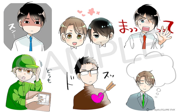 スタンプの絵柄は全32種。いずれのイラストも、豊田がLINEスタンプのために描き下ろしたものとなっている。購入には120円、または50コインが必要。