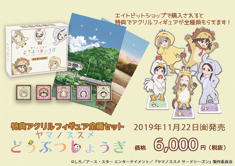 しろ原作によるアニメ「ヤマノススメ サードシーズン」と将棋風ゲーム「どうぶつしょうぎ」がコラボレート。その名も「ヤマノススメどうぶつしょうぎ」が、本日11月22日にエイトビットのオフィシャルショップ・エイトビットショップで発売された。