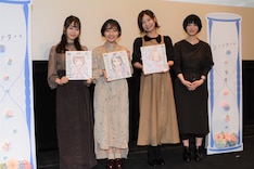 イベント後半ではさとからキャスト陣へのサプライズプレゼントとして、それぞれの演じたキャラクターのイラスト色紙が贈られた。3人は「やばい!」「かわいい!」「うわー!」と互いに色紙を見せ合って大喜び。色紙は新宿バルト9のロビーにて展示されるので、気になる人は足を運んでみよう。