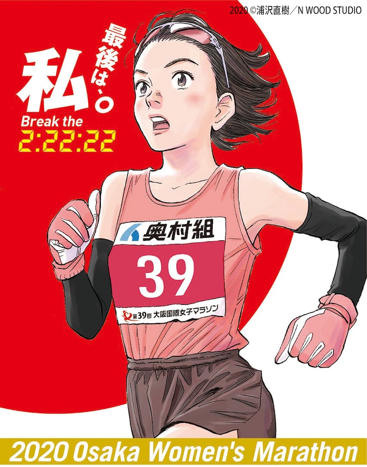「第39回 大阪国際女子マラソン」は2020年開催の東京オリンピックに向けて、マラソン女子日本代表の最後の1枠を争う選考会「MGC(マラソングランドチャンピオンシップ)ファイナルチャレンジ」の1つとして行われるもの。浦沢が「大阪国際女子マラソン」のイメージキャラクターを描き下ろすのは前回大会に続き2度目となる。前回大会の中継を観たという浦沢は「イラストを描かせていただいて2年目になりますが、昨年は自分の絵をバックにスタジアムに入り最後の力を振り絞って走っていく選手の皆さんの姿に胸が熱くなりました。今年も力いっぱいの走りを期待しています」とメッセージを寄せた。