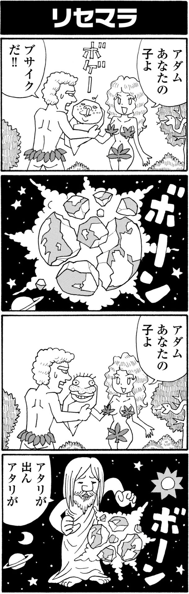 本作では、榎本が現代ゲーマーの間で使用される用語を、シュールな4コマで紹介。スマートフォンゲームでインストールとアンインストールを繰り返す“リセマラ”であれば、神による天地創造がオチといった具合だ。本日更新分ではリセマラに加え、舐めプ、死にゲー、おま国の4つの言葉をテーマに、5本の4コマが掲載されている。