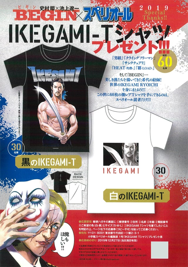本日12月13日発売のビッグコミックスペリオール2020年1号(小学館)では、「BEGIN」の池上遼一のTシャツが当たるプレゼント企画が実施されている。
