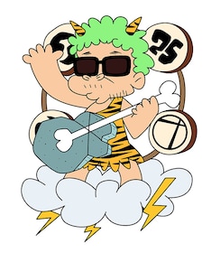 今年でソロ活動開始から25周年を迎えた奥田は、デビュー前にギャートルズというバンドで活動していた。このたびのコラボでは、ギターをかき鳴らして雷を落とす“雷さま”として、「はじめ人間ギャートルズ」の絵柄でイラスト化されている。また本イラストをあしらった缶バッジやキーホルダー、Tシャツなどのコラボグッズがラインナップされた。