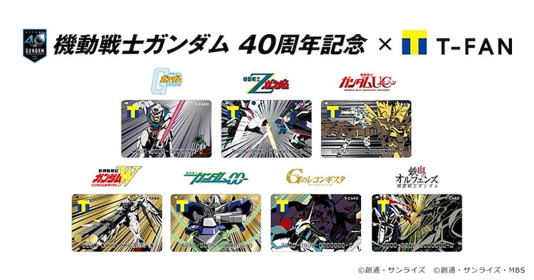 Tカードは「機動戦士ガンダム」「機動戦士Zガンダム」「機動戦士ガンダムUC」「新機動戦記ガンダムW」「機動戦士ガンダム00」「ガンダム Gのレコンギスタ」「機動戦士ガンダム 鉄血のオルフェンズ」の7種がラインナップ。各作品の名シーンを券面で再現したデザインとなっている。また購入者には券面デザインと40周年イラストを組み合わせたA4サイズのクリアファイルもプレゼント。そのほか券面デザインを使用したスライドカードケース7種とアクリルミラーパネル7種も予約販売される。また「機動戦士ガンダムシリーズ×Tカード」を持っている人の中から抽選で5名に「RG 1/144 フルアーマー・ユニコーンガンダム」を進呈。詳細は「機動戦士ガンダムシリーズ×Tカード」の公式サイトにてチェックしよう。