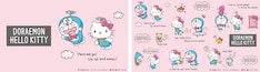 2015年にスタートした「ドラえもん」とハローキティのコラボ企画。このたび登場した新たなコラボデザインシリーズでは、ドラえもんとハローキティがひみつ道具やリボンなどお互いのお気に入りのモチーフで仲良く遊んでいる様子がデザインされた。ドラえもんはハローキティのリボンを、ハローキティはドラえもんの鈴やタケコプターを付けたマスコットホルダーや、リバーシブルクッション、トートバッグ、リングノート、ボールペンなどのアイテムがラインナップされている。